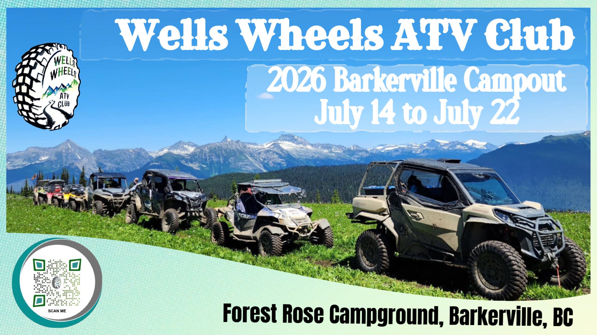 July 14th to 22nd at Forest Rose Campground in Barkerville, BC. You must be a member of ATVBC & Wells Wheels ATV Club to participate in any events or activities organized by our Club.
